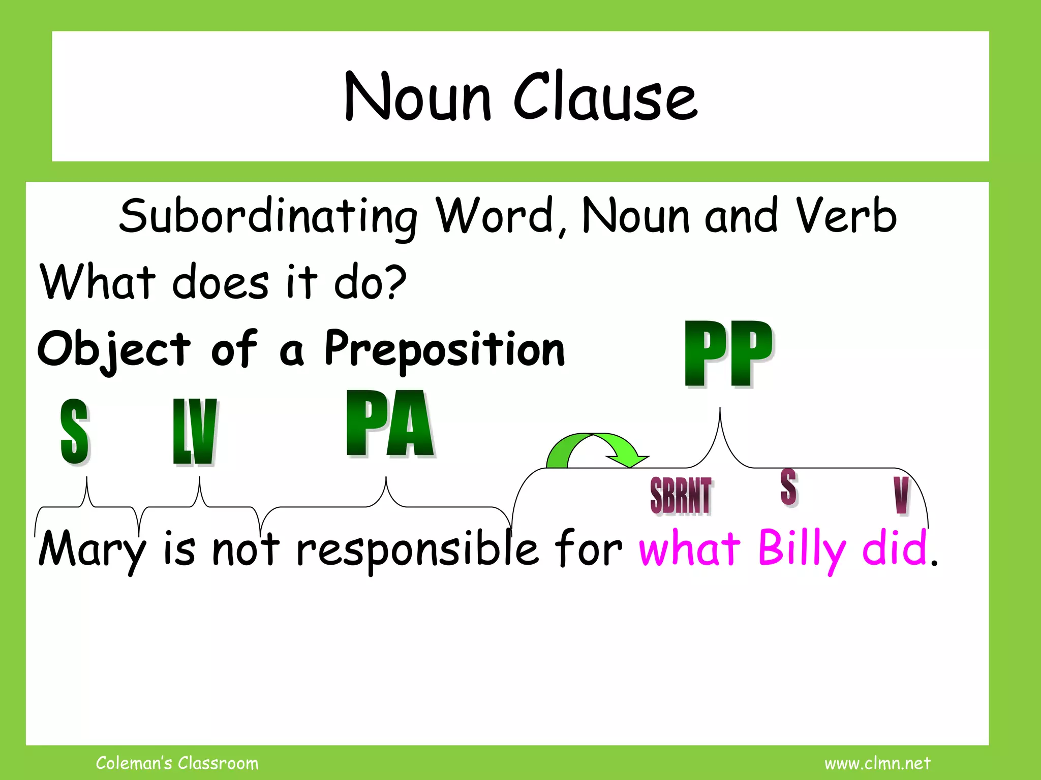 Subordinate Clauses Reviews. Noun Clauses Grammar Lessons. 7th-8th ...