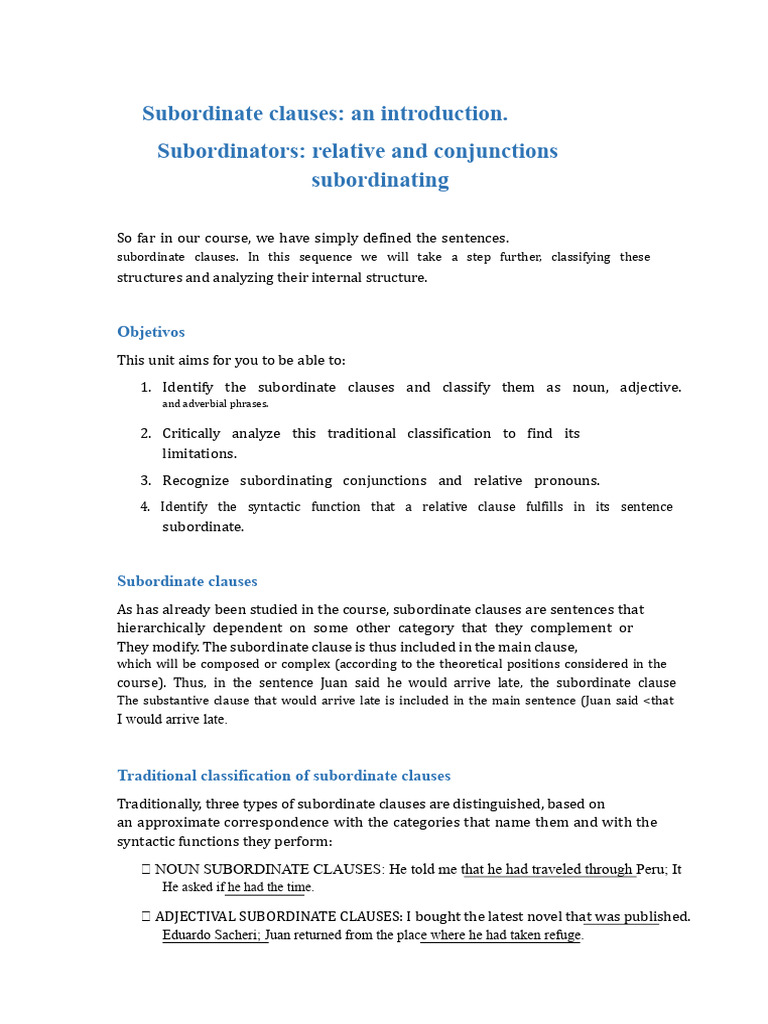 Subordinate clauses: an introduction | PDF | Clause | Noun