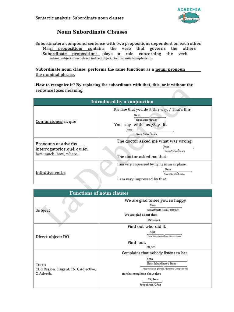 Noun Subordinate Sentence For Fifth Grade of Secondary School | PDF ...