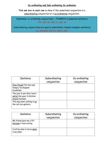 Coordinating subordinating - Teaching resources