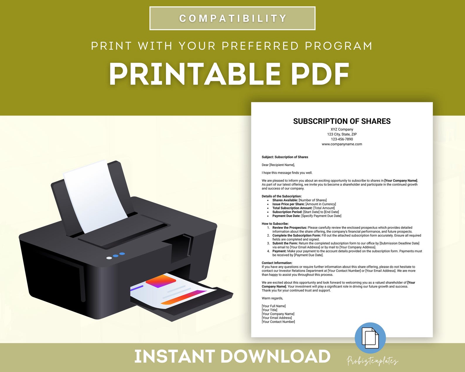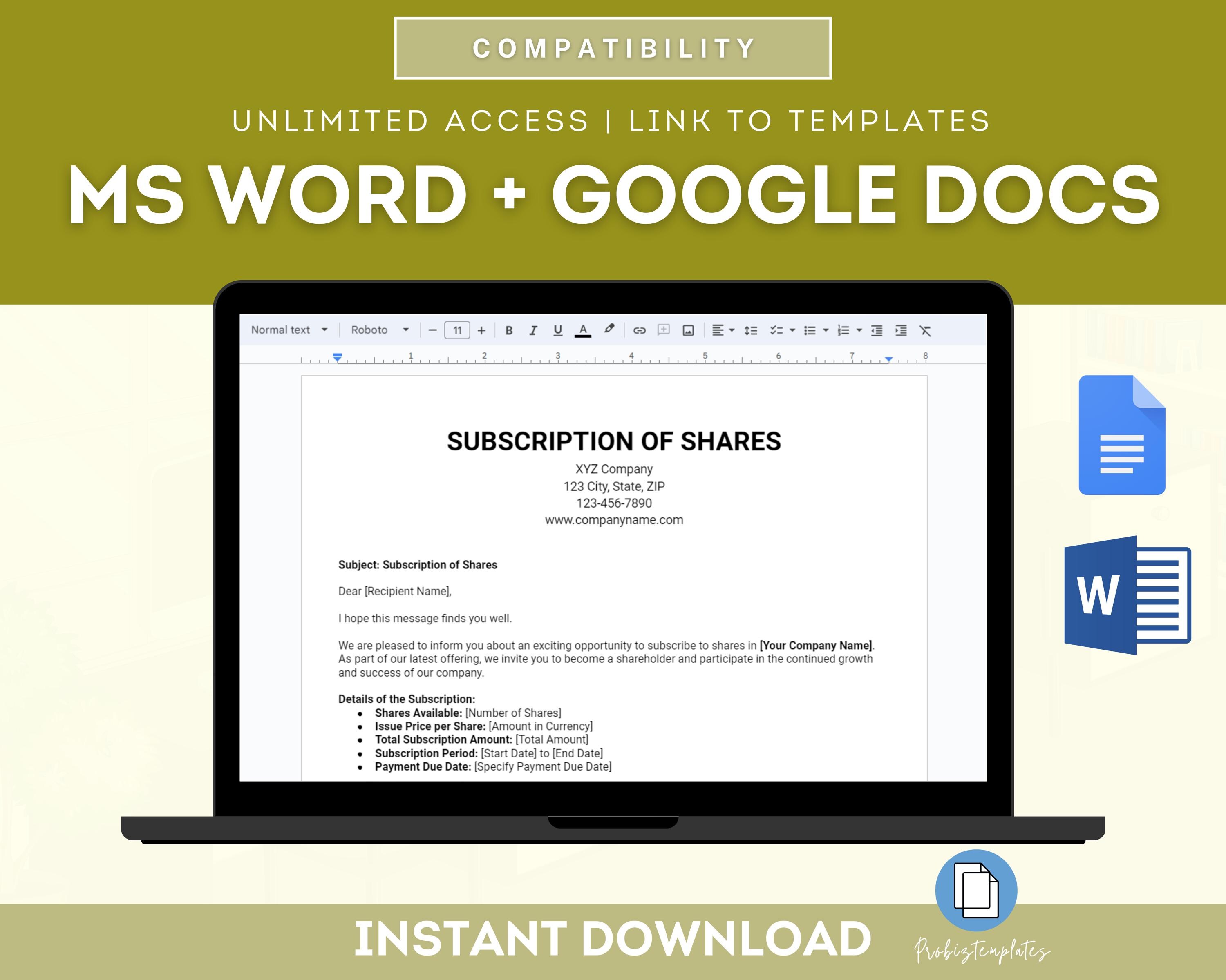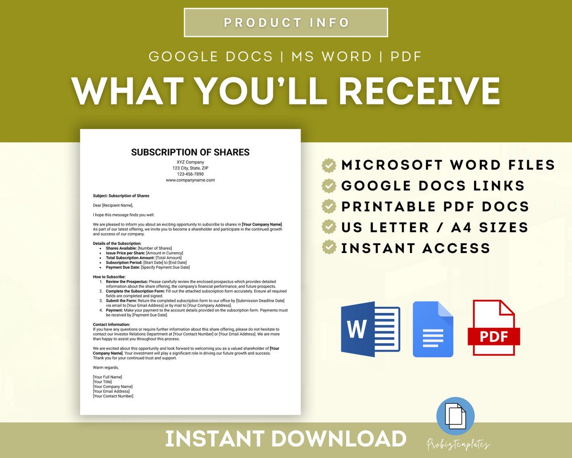 Subscription Offer Letter for Shares, Share Subscription Invitation ...