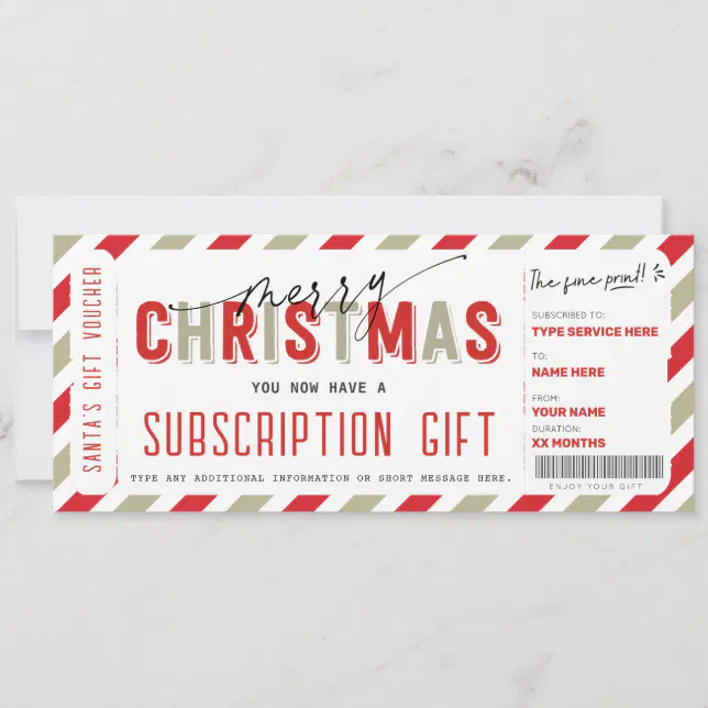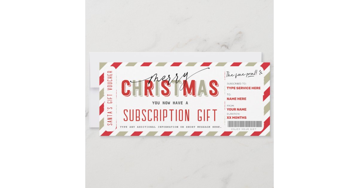 Christmas Subscription SERVICE Gift Ticket Voucher Invitation | Zazzle