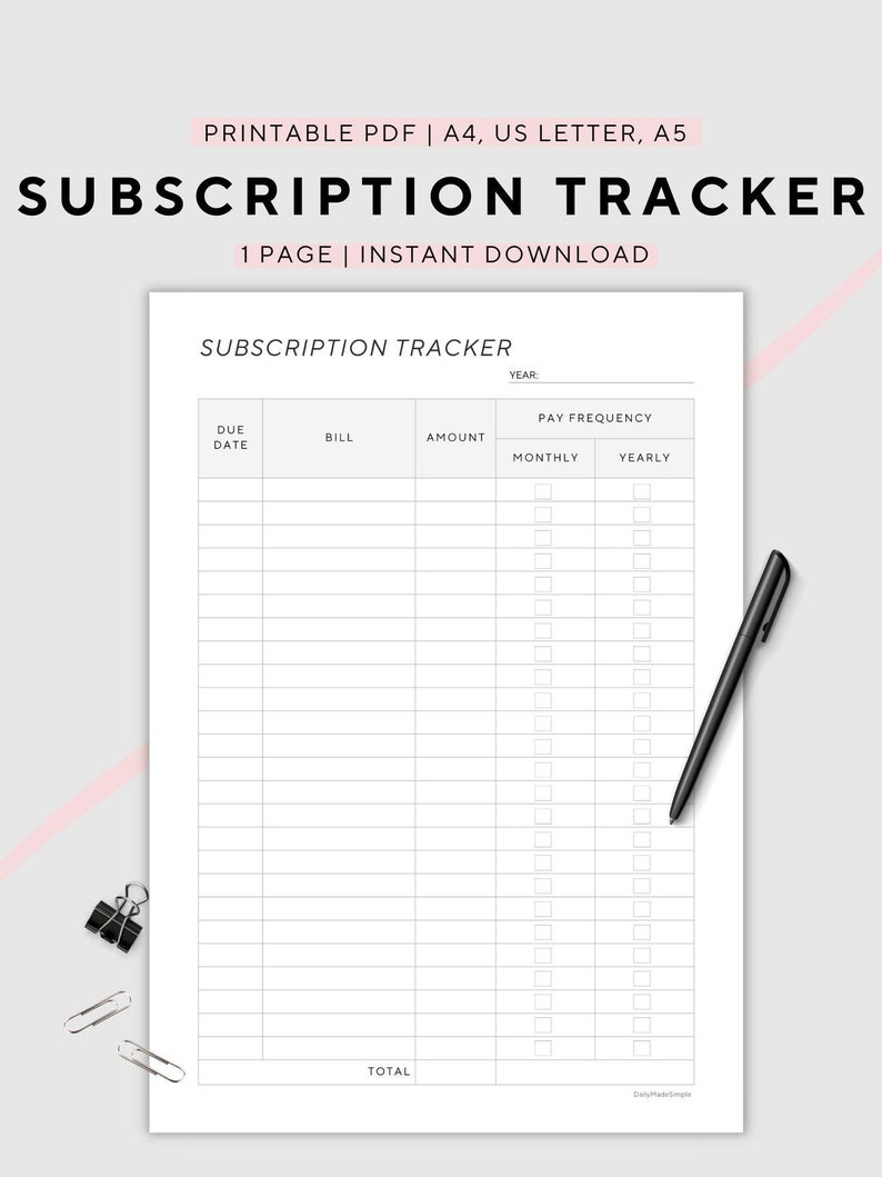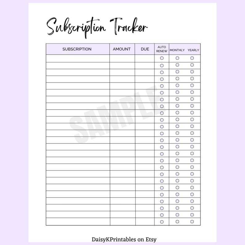 Printable: Subscription Tracker - Organization & Planning - Etsy