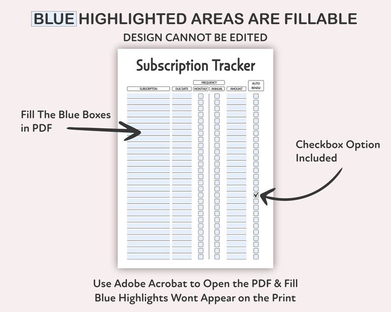 Editable Subscription Tracker | Subscription Checklist | Bill Payment ...
