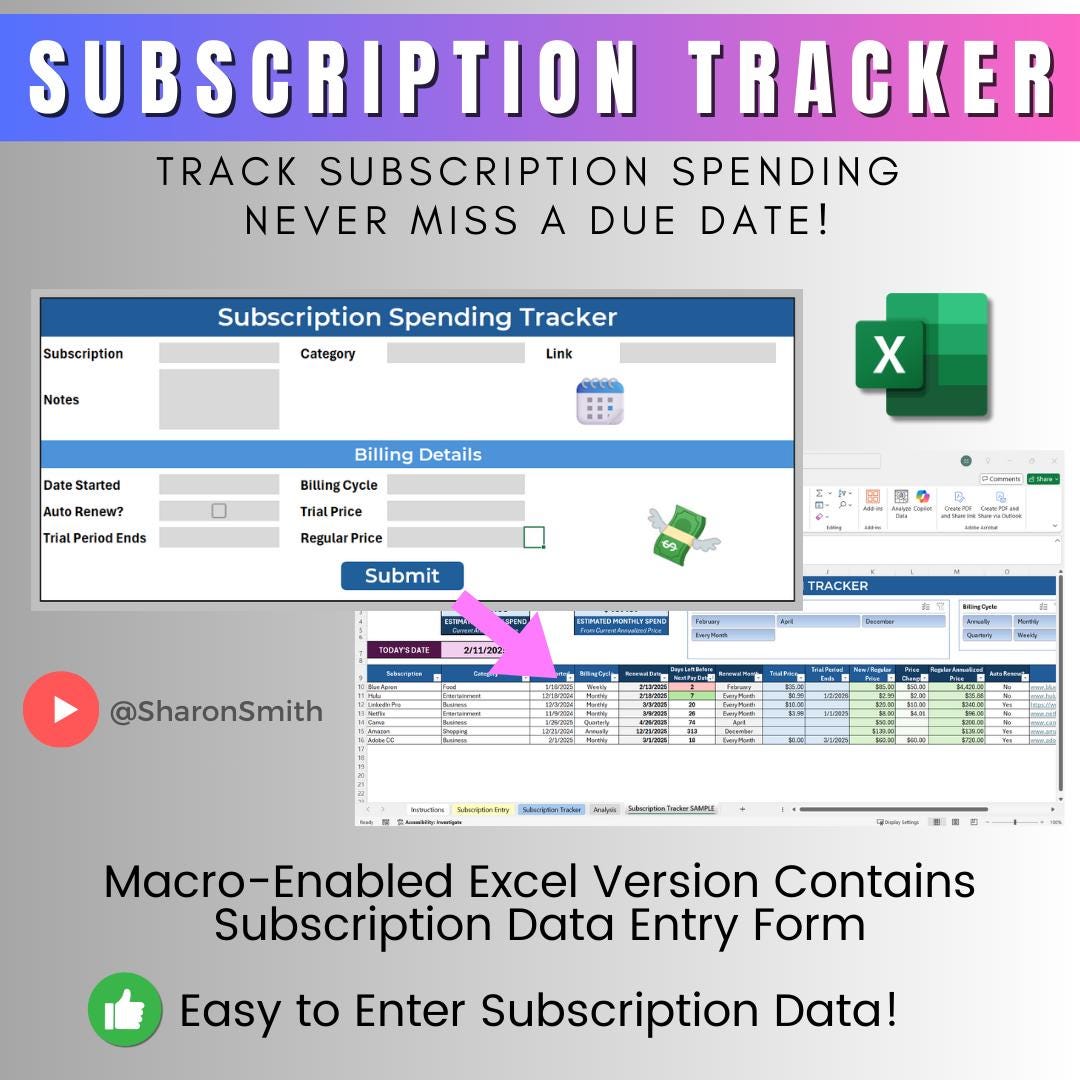 Subscription Tracker for Monthly and Annual Expenses, Template, Budget ...