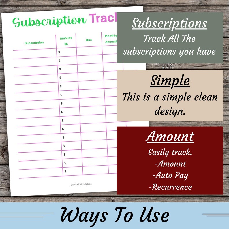 Subscription Tracker Printable: Expense & Membership Organizer (PDF) - Etsy