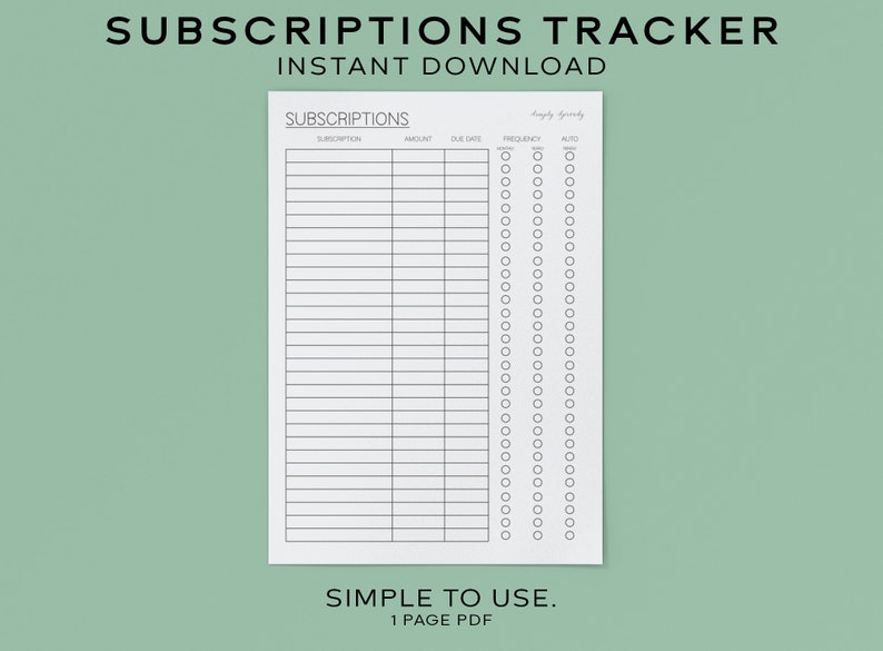 Subscription Tracker Printable Digital Download, Expense Tracker ...