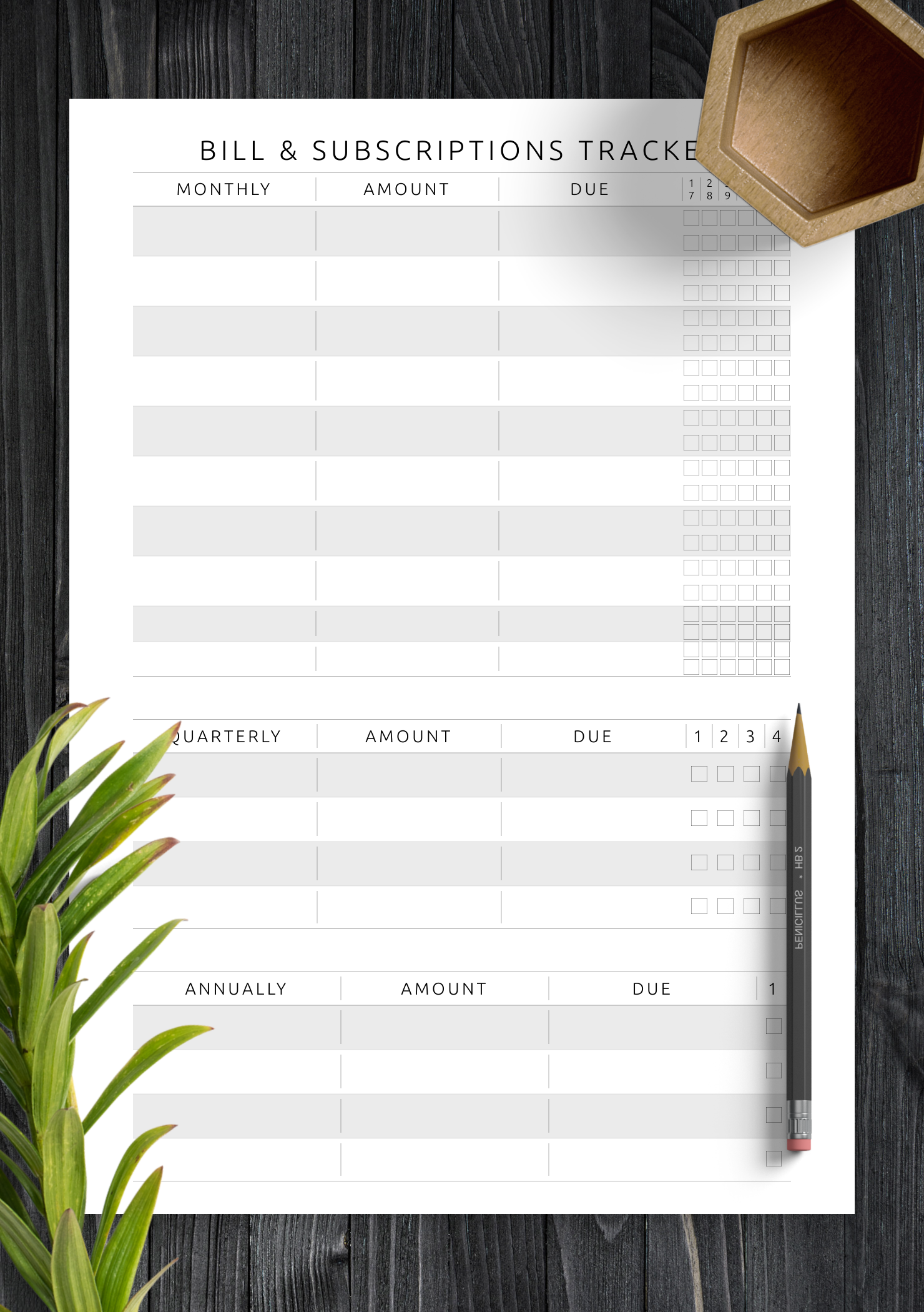 Subscription Tracker, Bill Payments Checklist, Finance Planner ...