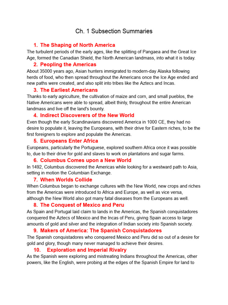 CH 1 Subsection Summaries (10 Sections in The Chapter) | PDF