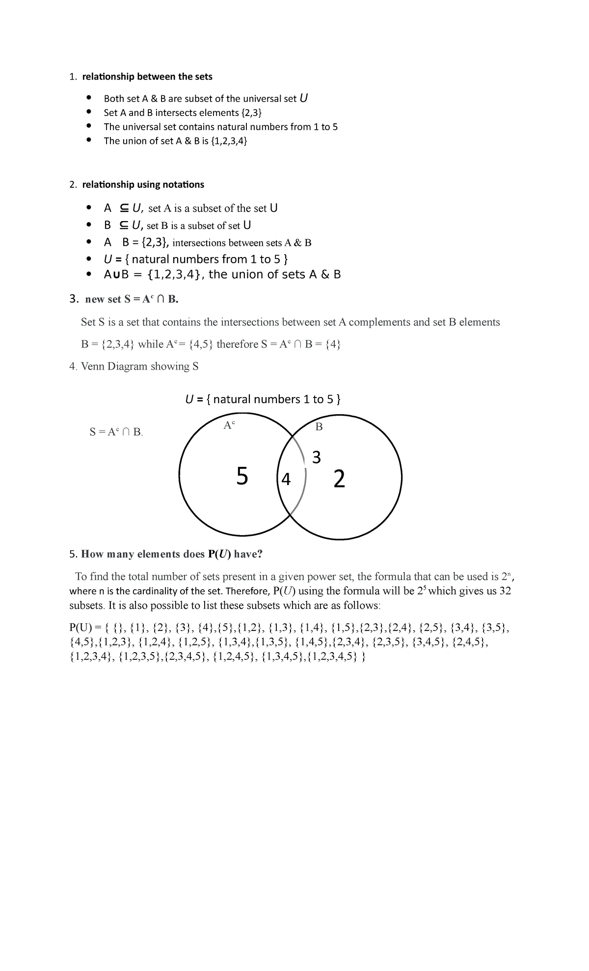 Unit 1 assignment - 5 1. relationship between the sets Both set A & B ...