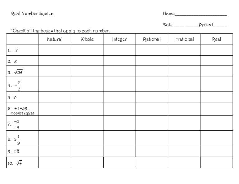 Explore Your Understanding Assignment Visually organize the Real Number ...