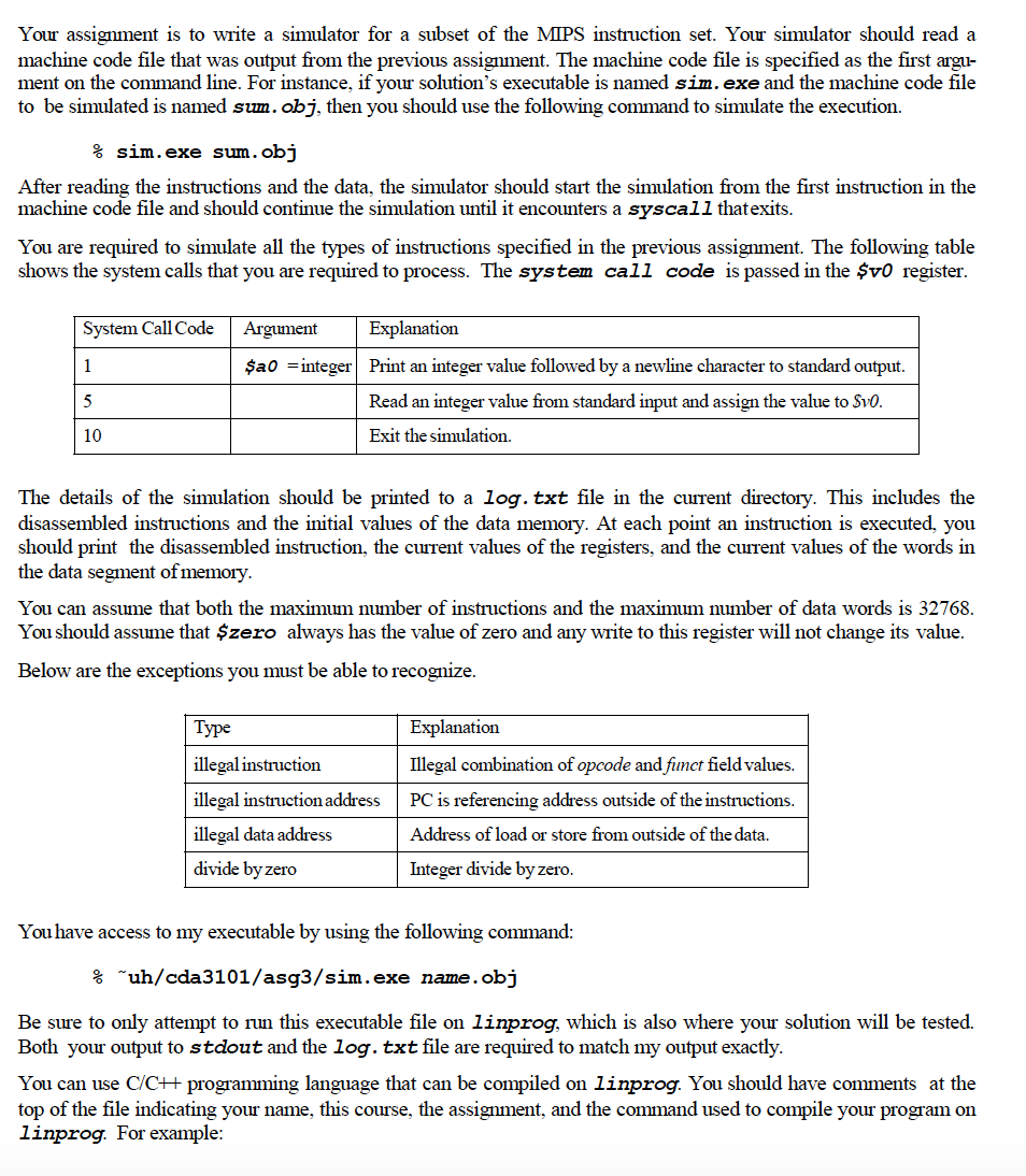 Your assignment is to write a simulator for a subset | Chegg.com