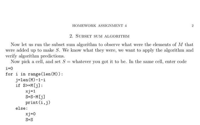 Solved HOMEWORK ASSIGNMENT 4 2 2. SUBSET SUM ALGORITHM Now | Chegg.com