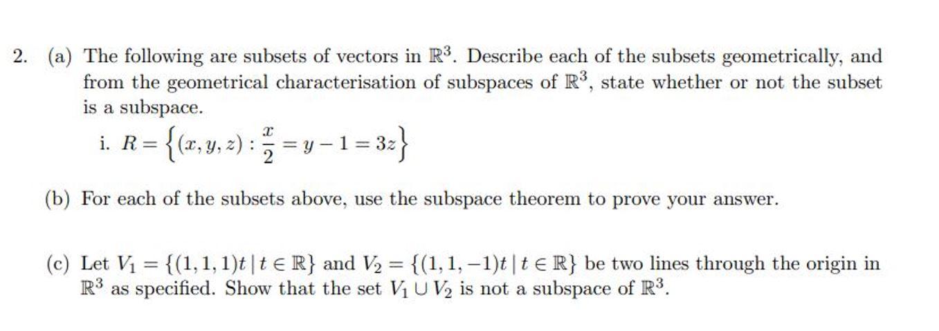 Solved 2. (a) The following are subsets of vectors in R3. | Chegg.com