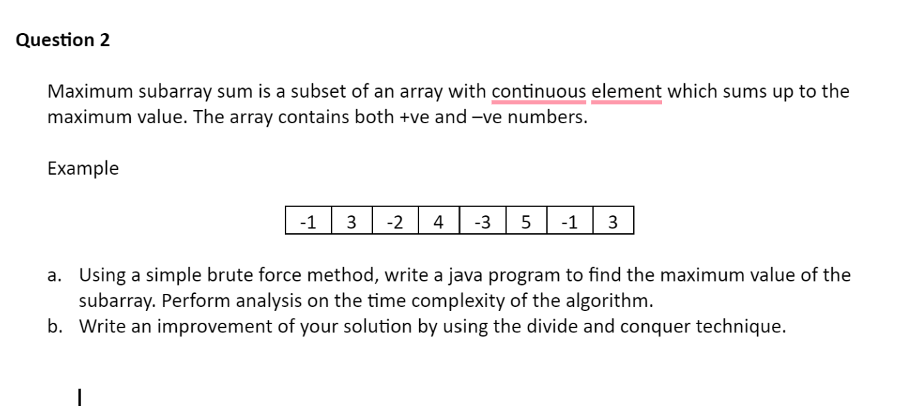 Solved Maximum subarray sum is a subset of an array with | Chegg.com