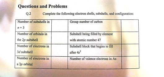 Solved Questions and Problems Q.2 Complete the following | Chegg.com