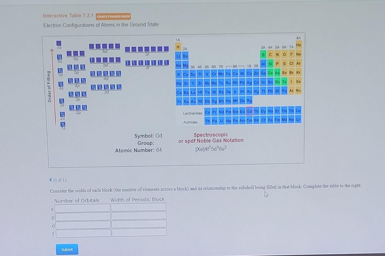 Solved I TUMEWUIK PUILLS) s, p, d, f-Subshell Blocks in the | Chegg.com
