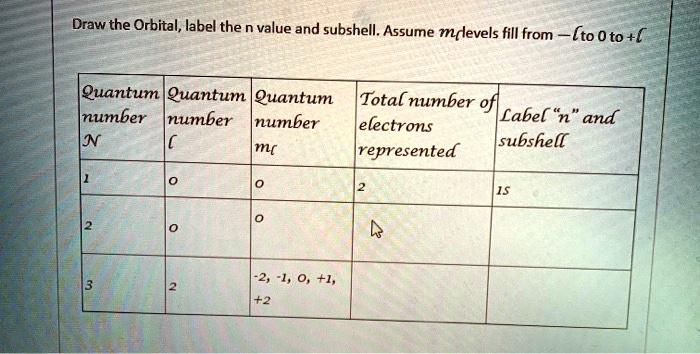 SOLVED: Draw the Orbital, label the value and subshell. Assume mclevels ...