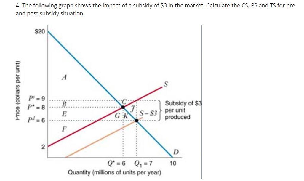 Solved 4. The following graph shows the impact of a subsidy | Chegg.com