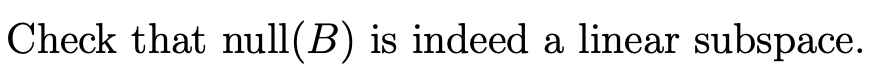 Solved Check that null(B) is indeed a linear subspace. | Chegg.com