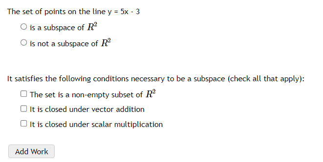 Solved The set of points on the line y=5x−3 is a subspace of | Chegg.com