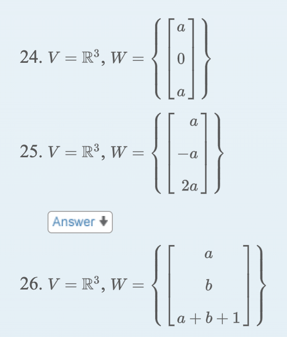 Solved #24, #26 determine whether w is a subspace of v. Note | Chegg.com