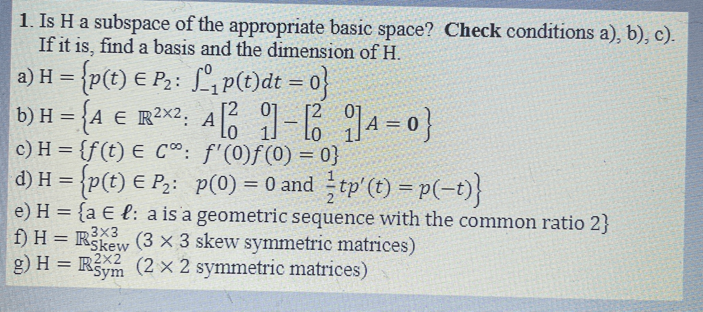 Solved Is H a subspace of the appropriate basic space? Check | Chegg.com