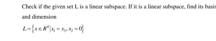 Solved Check if the given set L is a linear subspace. If it | Chegg.com