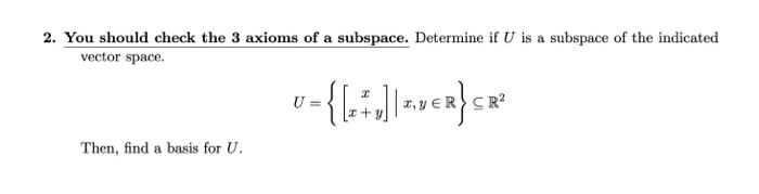 Solved 2. You should check the 3 axioms of a subspace. | Chegg.com