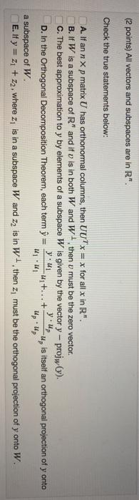 Solved (2 points) All vectors and subspaces are in R" Check | Chegg.com