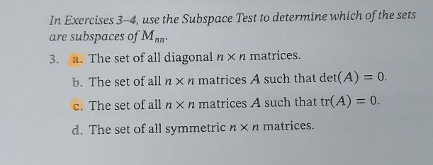 Answered: Use the Subspace Test to determine which of the sets are ...