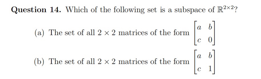 Solved Question 14. Which of the following set is a subspace | Chegg.com