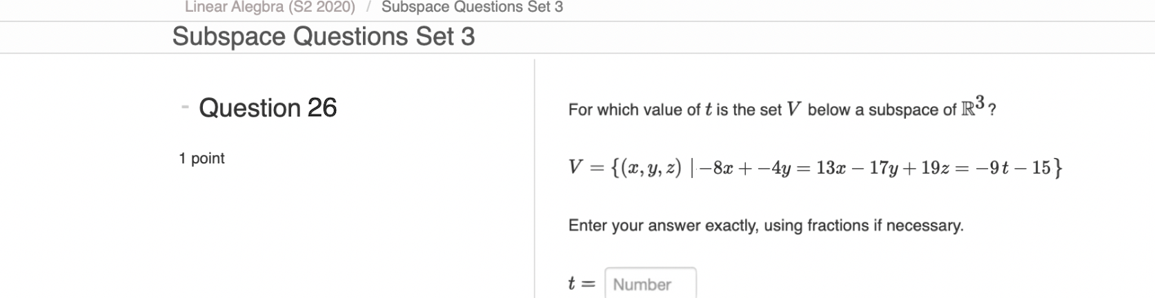 Solved möbius Linear Alegbra (S2 2020) Subspace Questions | Chegg.com