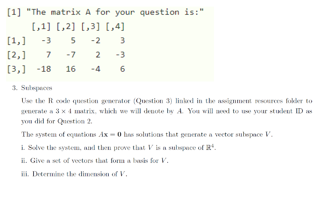 [1] "The matrix A for your question is:" 3. Subspaces | Chegg.com