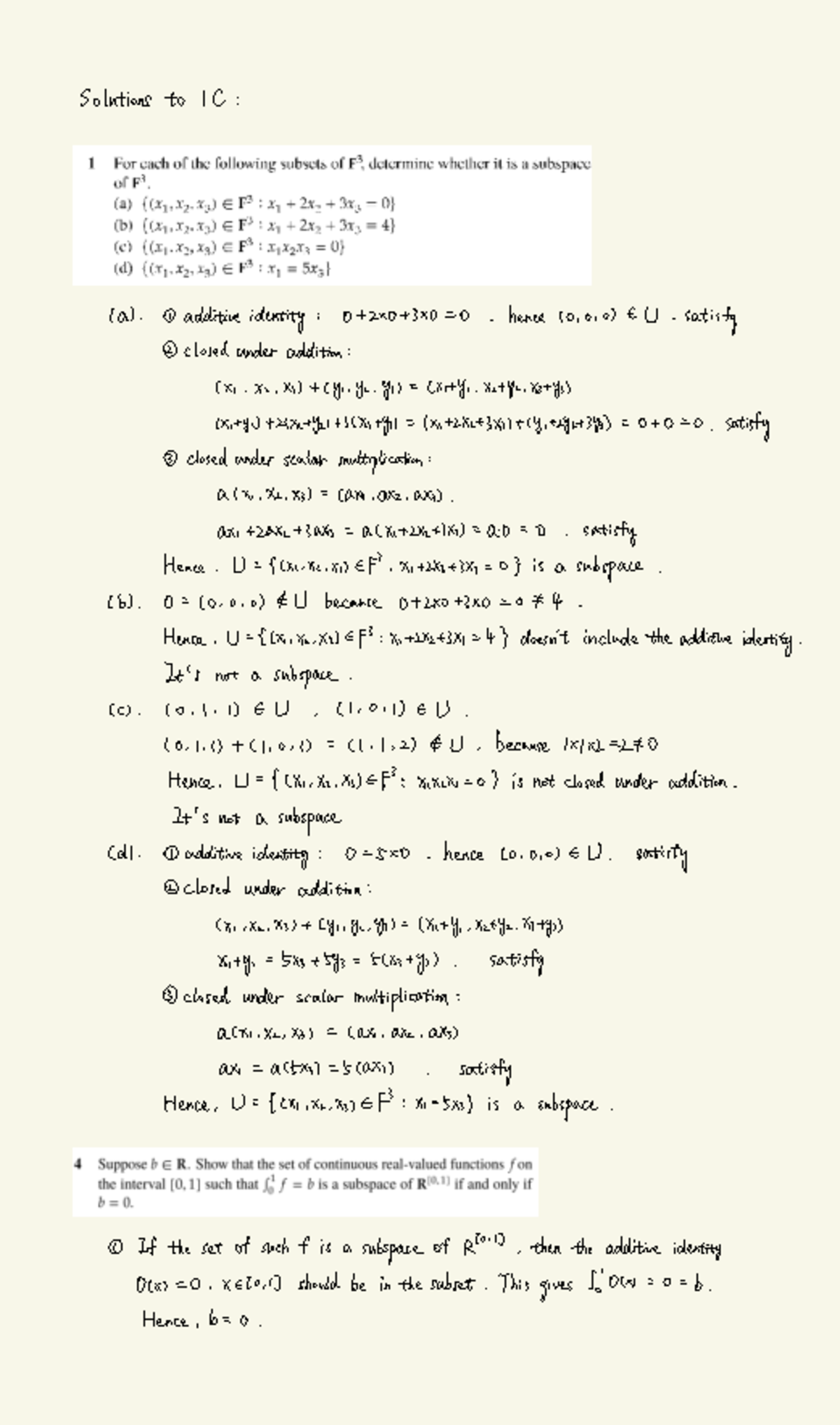 1C - Solutions to Subspace Questions and Properties - Studocu