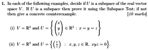SOLVED: Iu each ol the following examples. decide if U is & subspace ...