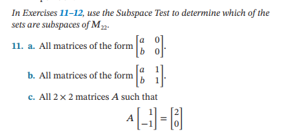 Solved In Exercises 11-12, use the Subspace Test to | Chegg.com