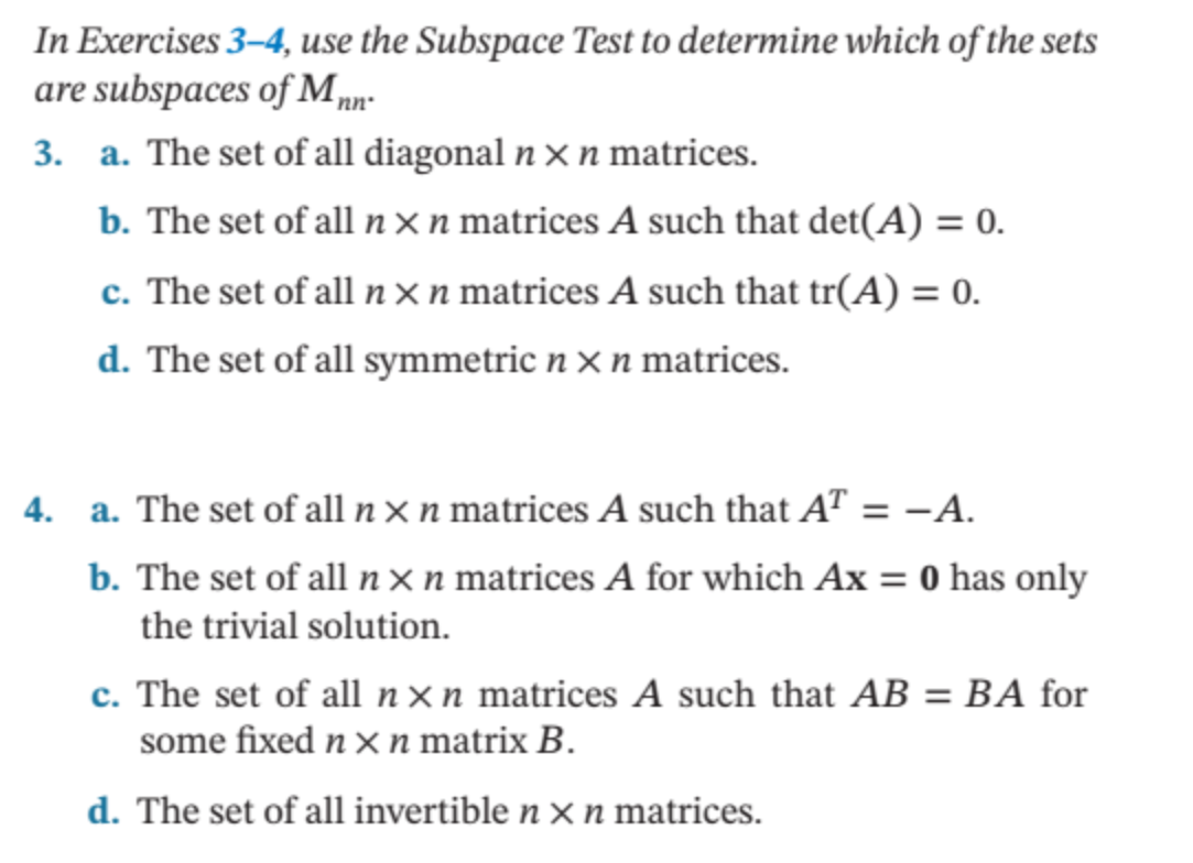 Solved In Exercises 3-4, use the Subspace Test to determine | Chegg.com
