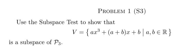 Solved PROBLEM 1 (S3) Use the Subspace Test to show that is | Chegg.com
