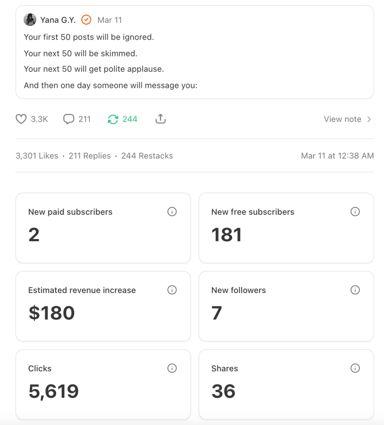 A small Substack milestone - by Tessa Lena