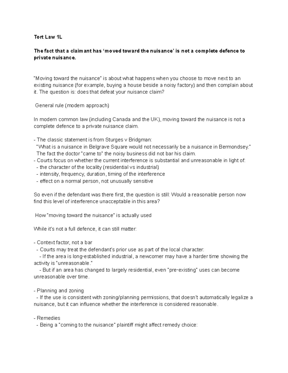 Tort Law 1L: Understanding 'Moving Toward the Nuisance' in Private ...