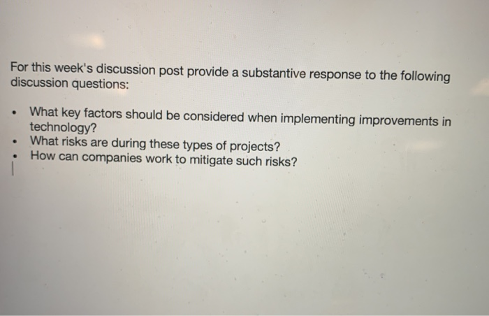 Solved For this week's discussion post provide a substantive | Chegg.com