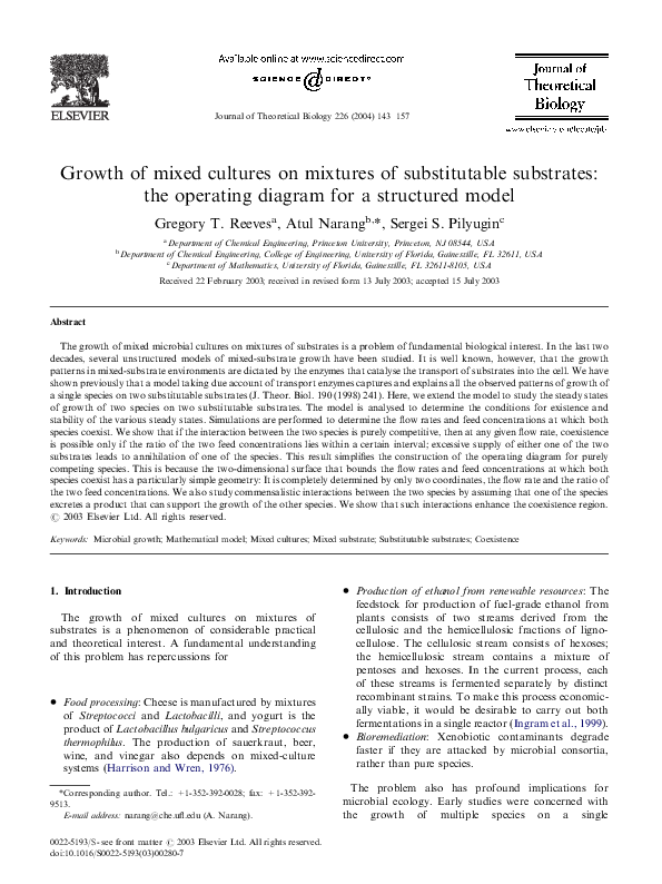 (PDF) Growth of mixed cultures on mixtures of substitutable substrates ...