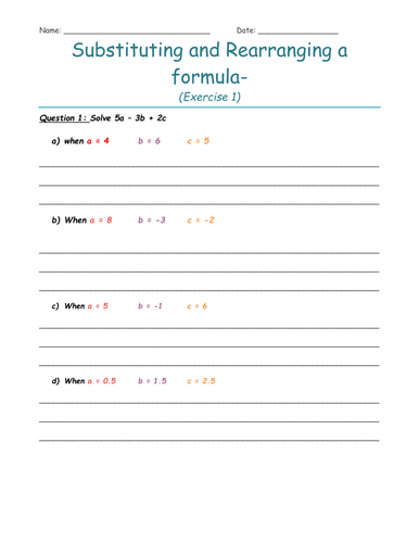 Substitution Worksheets | KS3 & KS4 with Answers