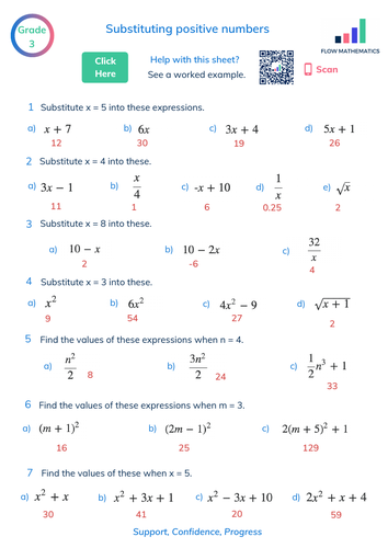 Substituting positive numbers | Teaching Resources