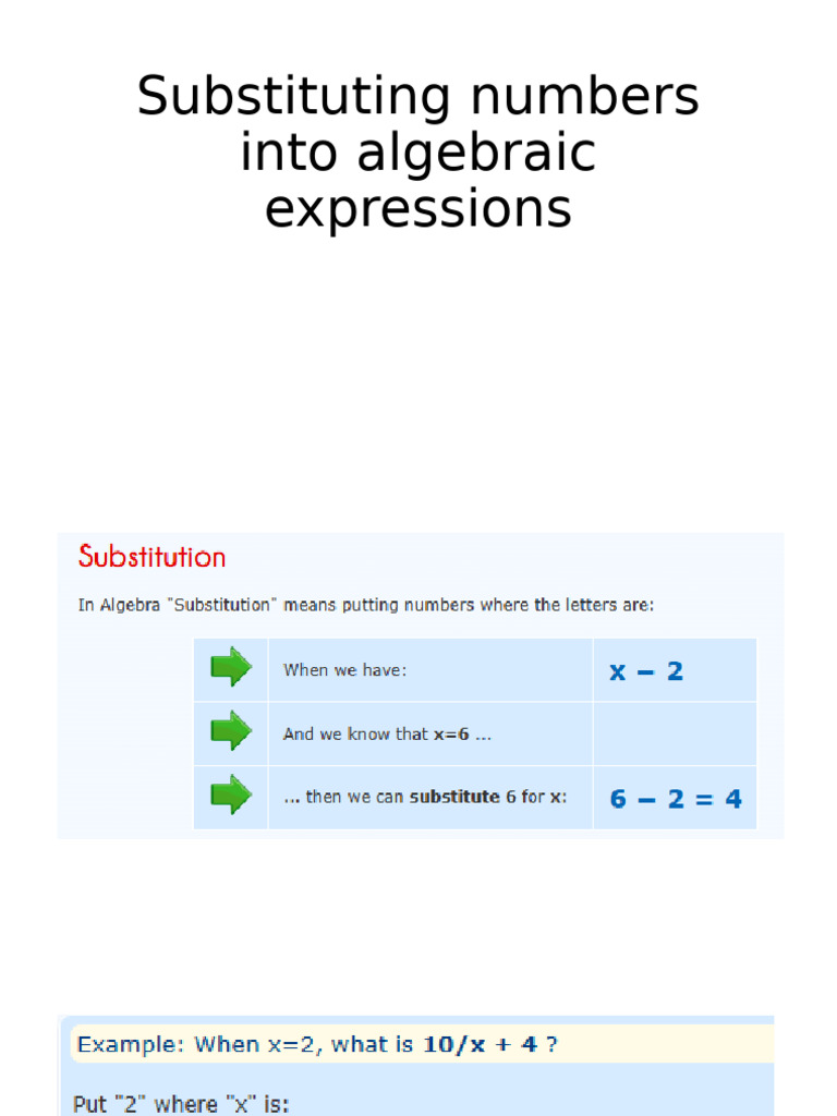 PPT - Substituting into expressions PowerPoint Presentation, free ...