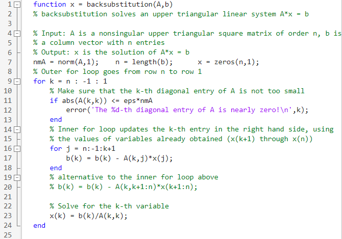 Solved 3 (MATLAB) (a) In the MATLAB back substitution code | Chegg.com