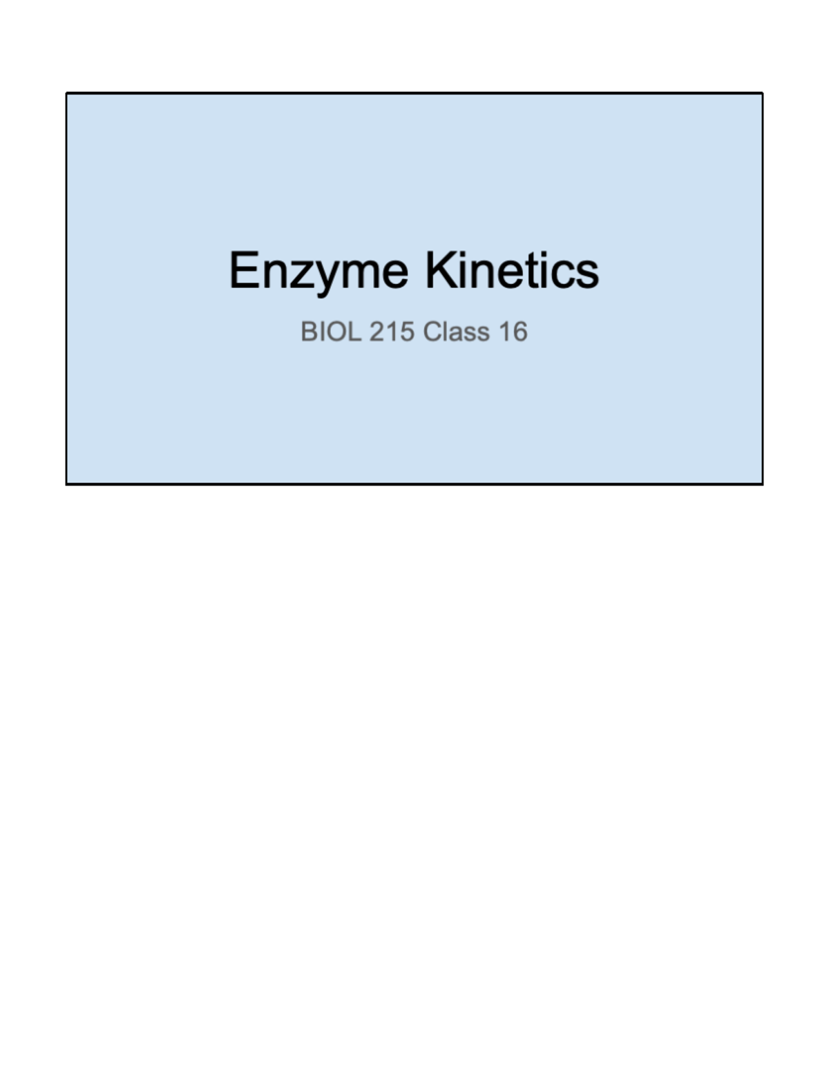 BIOL 215 Class 16: Enzyme Kinetics Lecture Notes - Studocu