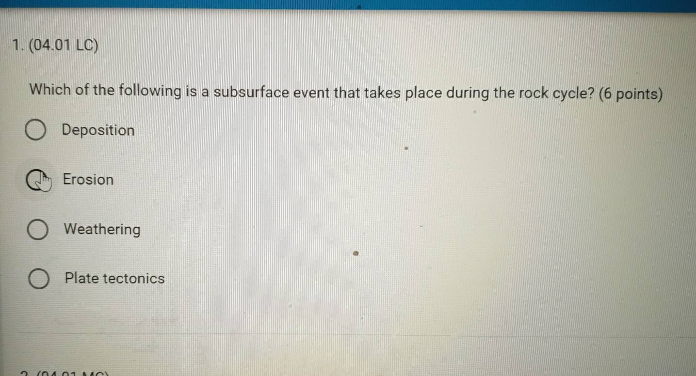 تم الحل:(04.01 LC) Which of the following is a subsurface event that ...