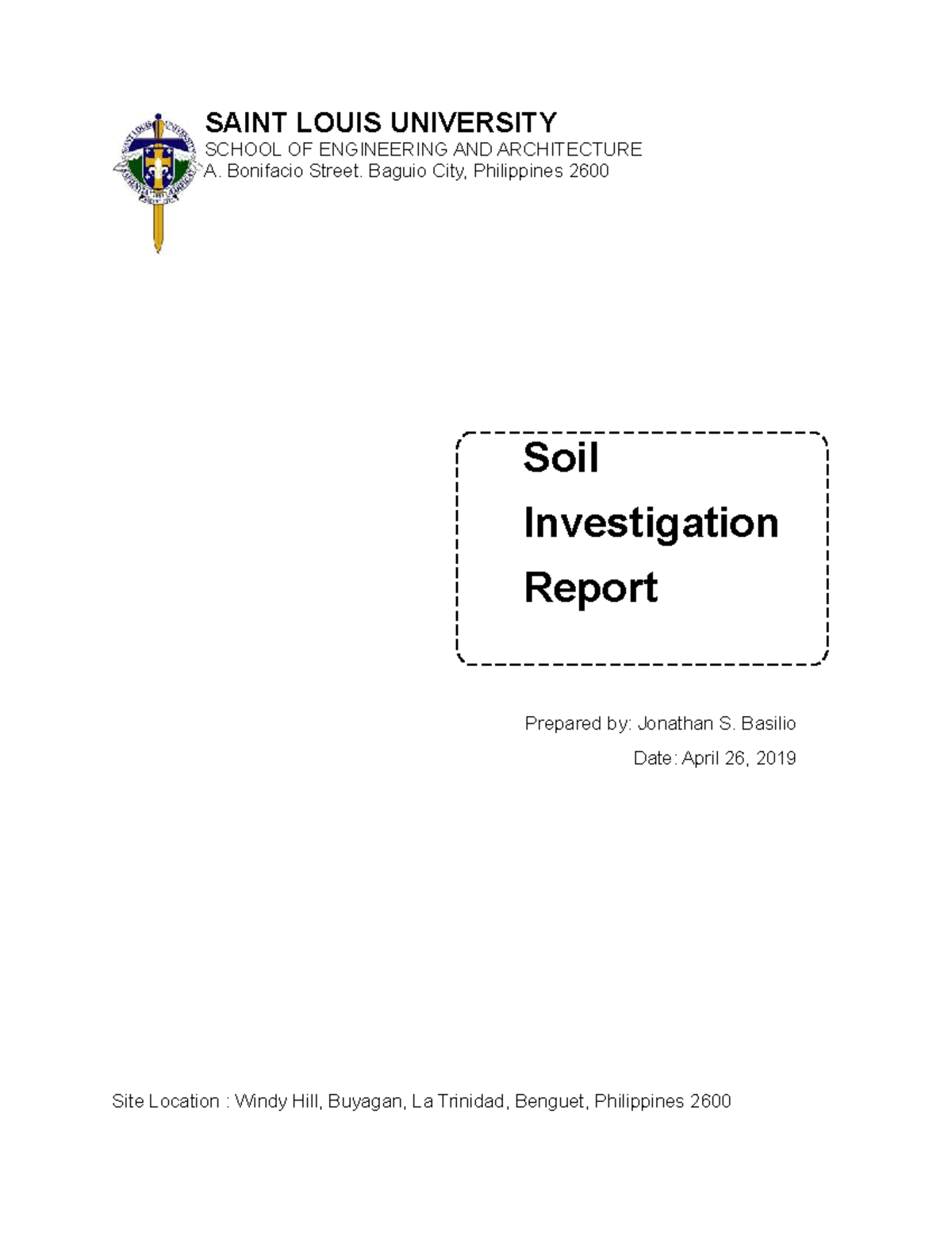Soil Investigation Report (ENGR 101) - Windy Hill, La Trinidad, 2019 ...